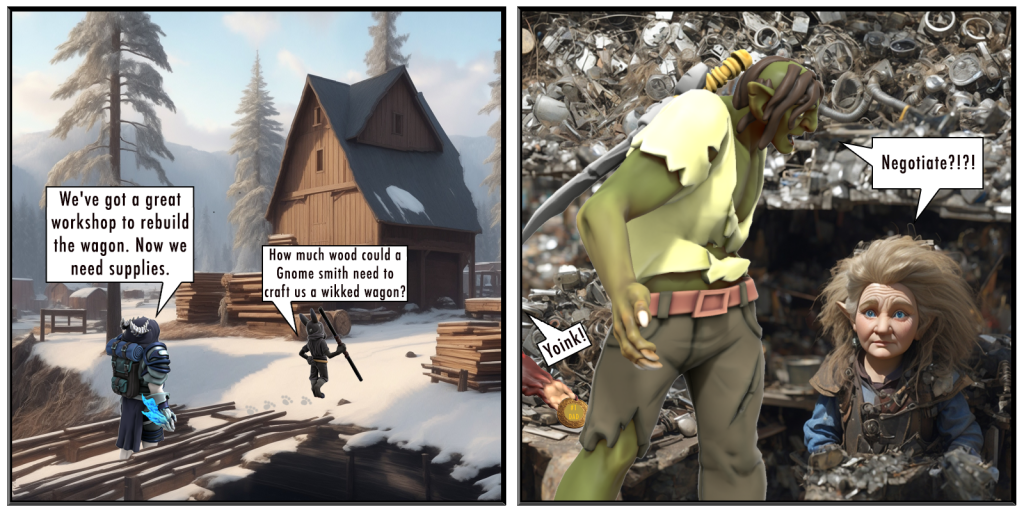 The series of items shown here, are unique to one specific group of people playing the game, but include concepts and designs that any DND player might recognize. You could imagine More Beer to be a brand in an imaginary realm, not unlike Acme is to Wile Coyote, or Wonka Candy Bars, except only the writers and actors of the game are aware of its’ existence.
